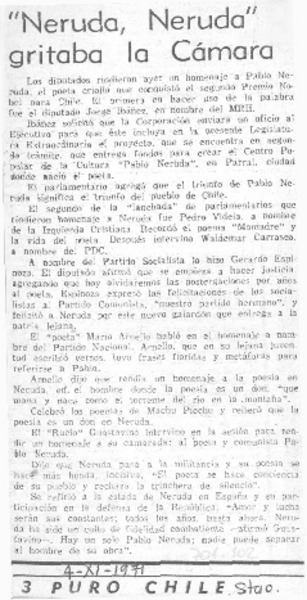 "Neruda, Neruda" gritaba la Cámara. [artículo]