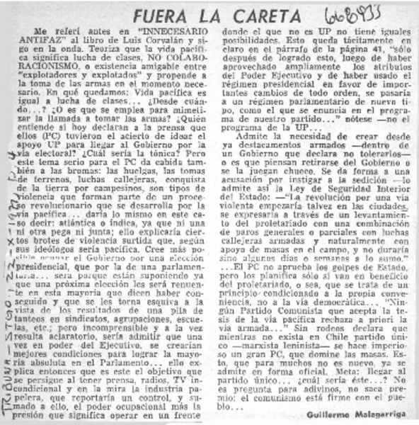 Fuera la careta [artículo] Guillermo Malagarriga.