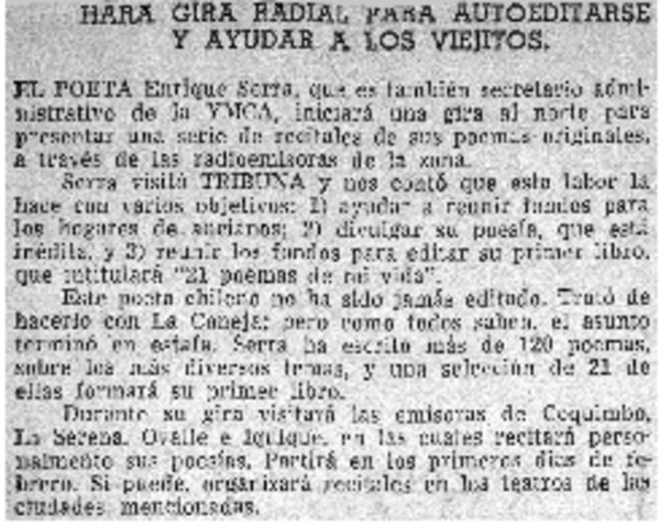 Hará gira radial para autoeditarse y ayudar a los viejitos. [artículo]