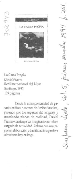 Carta propia - Pizarro, Daniel - Autores chilenos