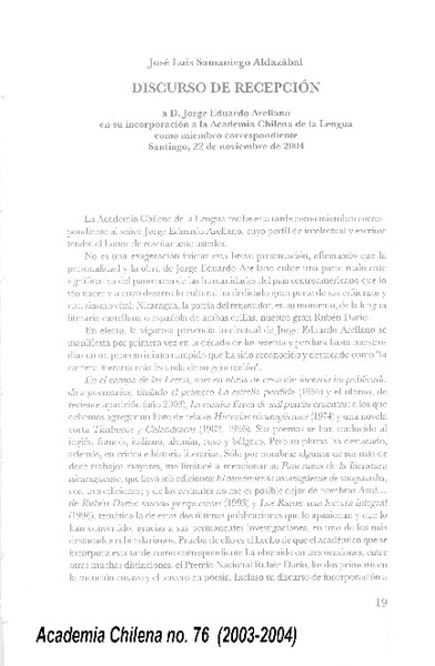 Discurso de recepción [artículo] José Luis Samaniego Aldazával.