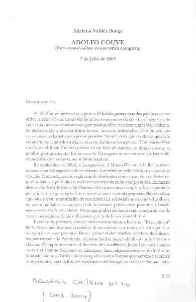 Adolfo Couve [artículo] Adriana Valdés Budge.