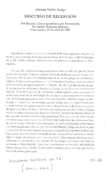 Discurso de recepción [artículo] Adriana Valdés Budge.