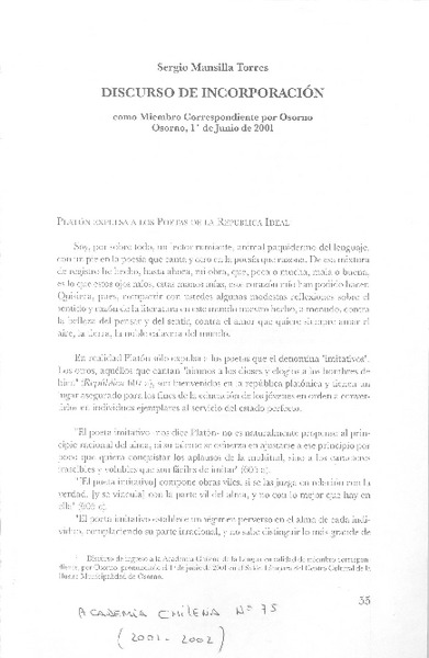 Discurso de incorporación [artículo] Sergio Mansilla Torres.