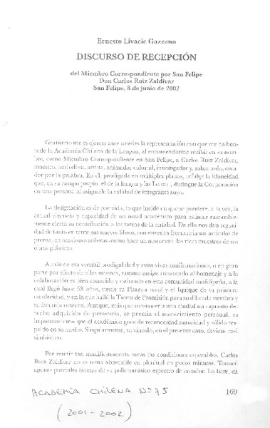 Discurso de recepción [artículo] Ernesto Livacic Gazzano.