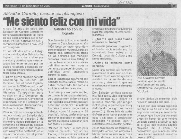 "Me siento feliz con mi vida" [artículo] K.A.V.