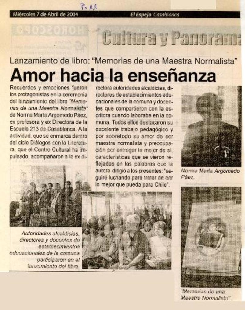 Autoras chilenas - Argomedo Páez, Norma Marta - Memorias de una maestra normalista