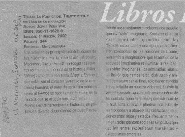 La Poética del tiempo: ética y estética de la narración. [artículo]