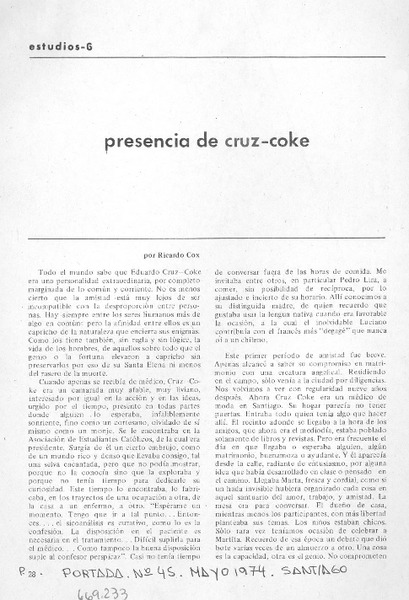 Presencia de Cruz-Coke [artículo] Ricardo Cox.