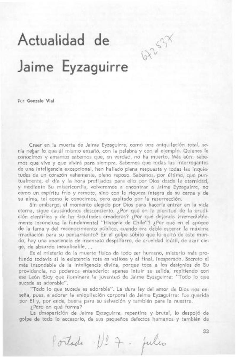 Actualidad de Jaime Eyzaguirre [artículo] Gonzalo Vial.