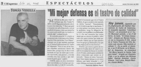"Mi mejor defensa es el teatro de calidad" [artículo] Patricia Gálvez Parra.