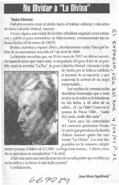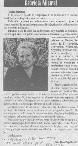 Gabriela Mistral [artículo] Juan Meza Sepúlveda.