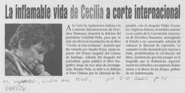 La Inflamable vida de Cecilia a corte internacional. [artículo]