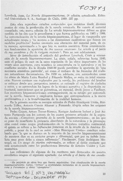 Autores chilenos - Loveluck, Juan - La novela hispanoamericana