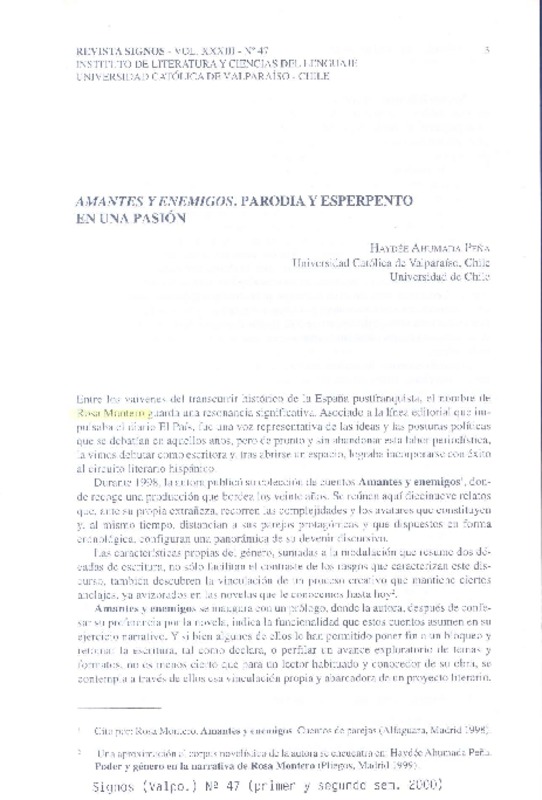 Amantes y enemigos, parodia y esperpento en una pasión [artículo] Haydée Ahumada Peña.