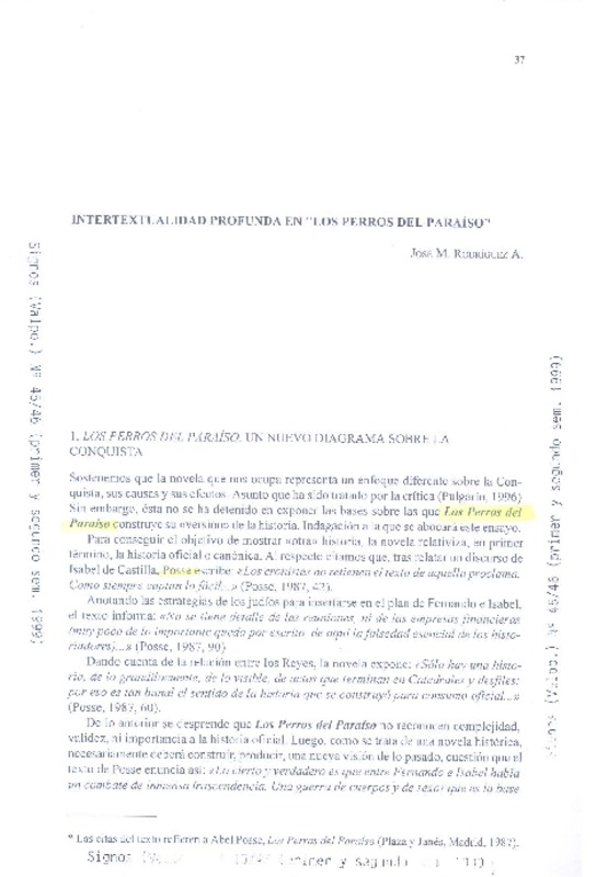 Intertextualidad profunda en "Los perros del paraíso" [artículo] José M. Rodríguez A.