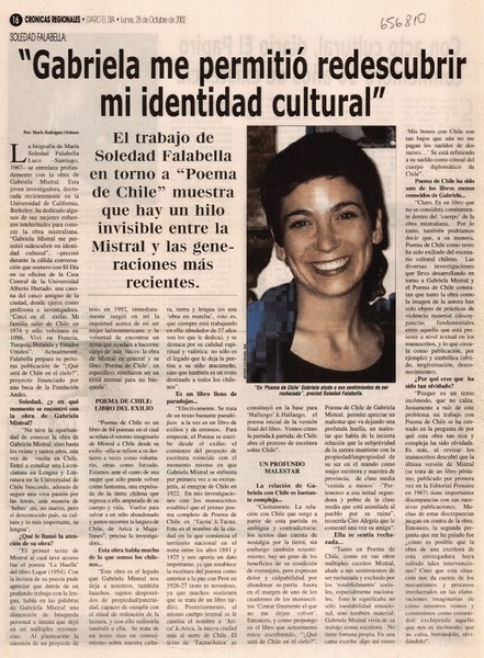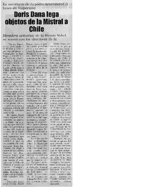 Doris Dana lega objetos de la Mistral a Chile. [artículo]