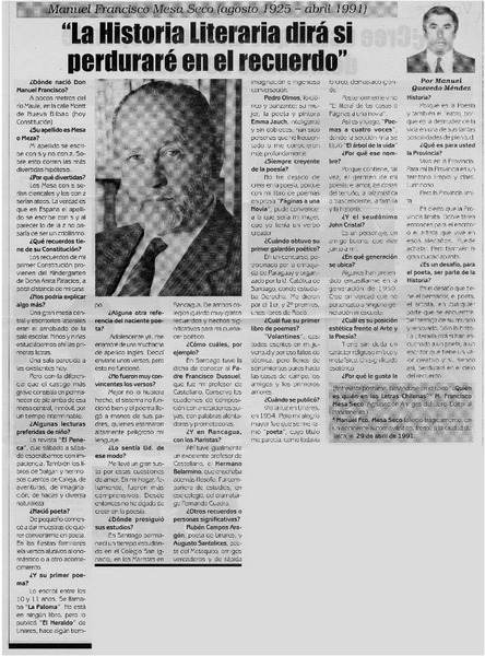 Autores chilenos - Mesa Seco, Manuel Francisco - [entrevista]