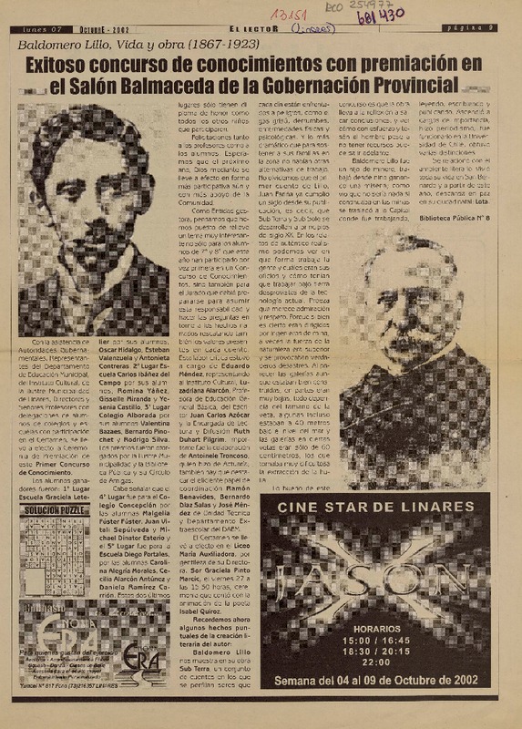 Exitoso concurso de conocimientos con premiación en el Salón Balmaceda de la Gobernación Provincial. [artículo]