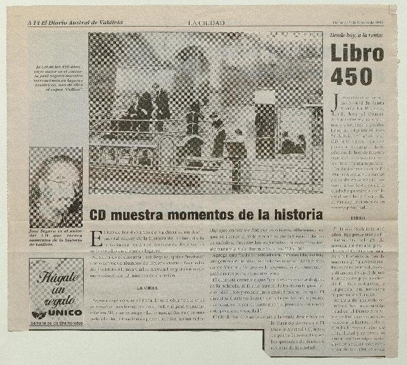 Libro y cd de los 450 años de Valdivia. [artículo]