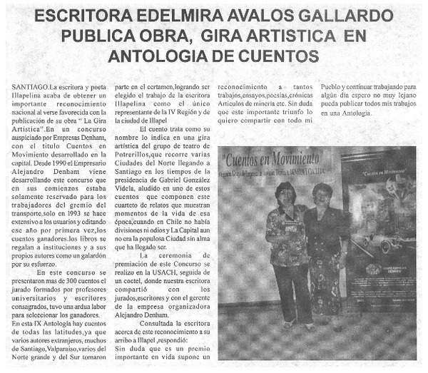 Escritora Edelmira Avalos Gallardo publica obra, gira artística en antología de cuentos. [artículo]
