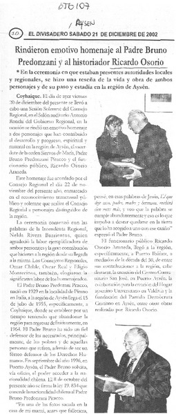 Rindieron emotivo homenaje al Padre Bruno Prendozani y al historiador Ricardo Osorio. [artículo]