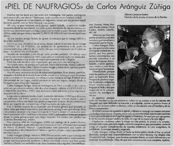 Piel de naufragios" de Carlos Aránguiz Zuñiga. [artículo]