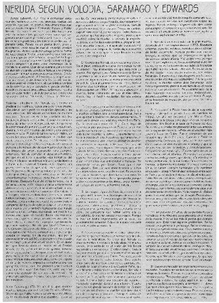 Neruda según Volodia, Saramago y Edwards. [artículo]