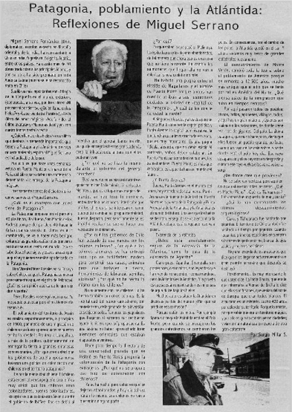 Patagonia, poblamiento y la Atlántida: reflexiones de Miguel Serrano : [entrevista] [artículo] Sergio Millar.