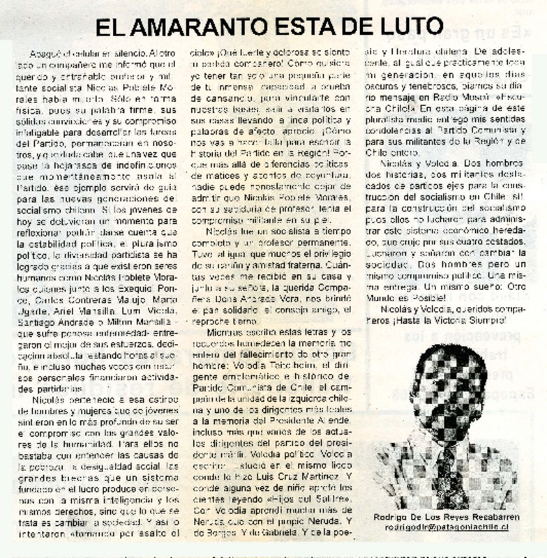 El amaranto está de luto [artículo]Rodrigo de los Reyes Recabarren.