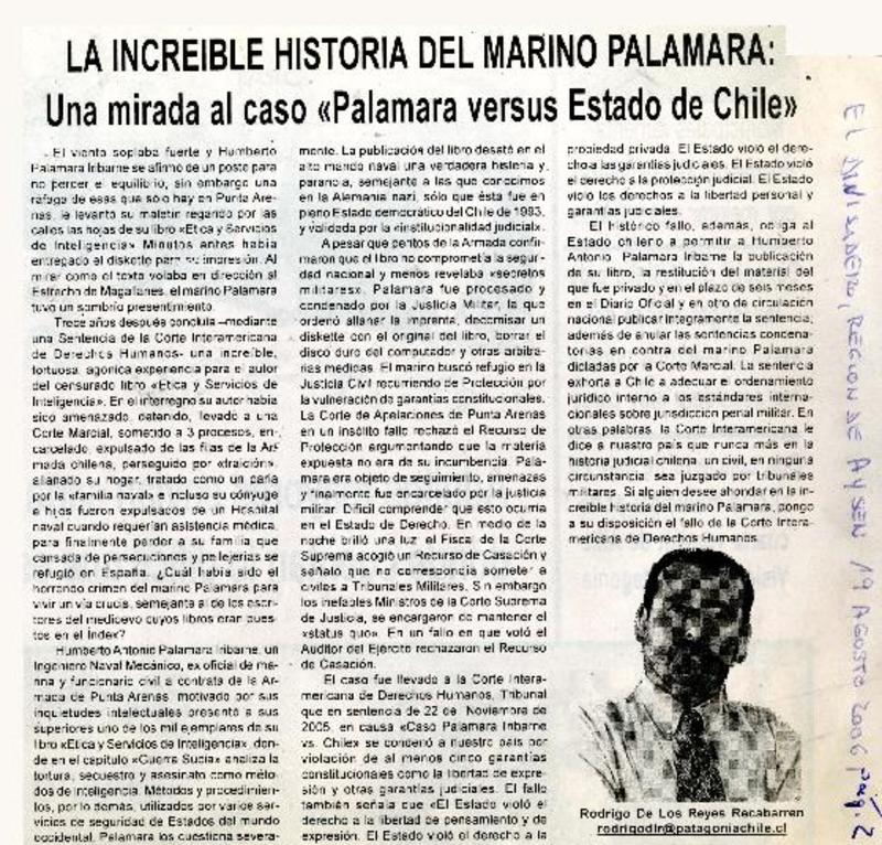 La increible historia del marino Palamara una mirada al caso "Palamara versus Estado de Chile" [artículo] : Rodrigo de los Reyes Recabarren.