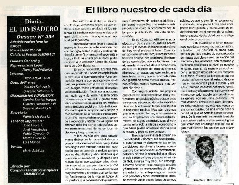 El libro nuestro de cada día [artículo]Ricardo E., Ortíz Barría.