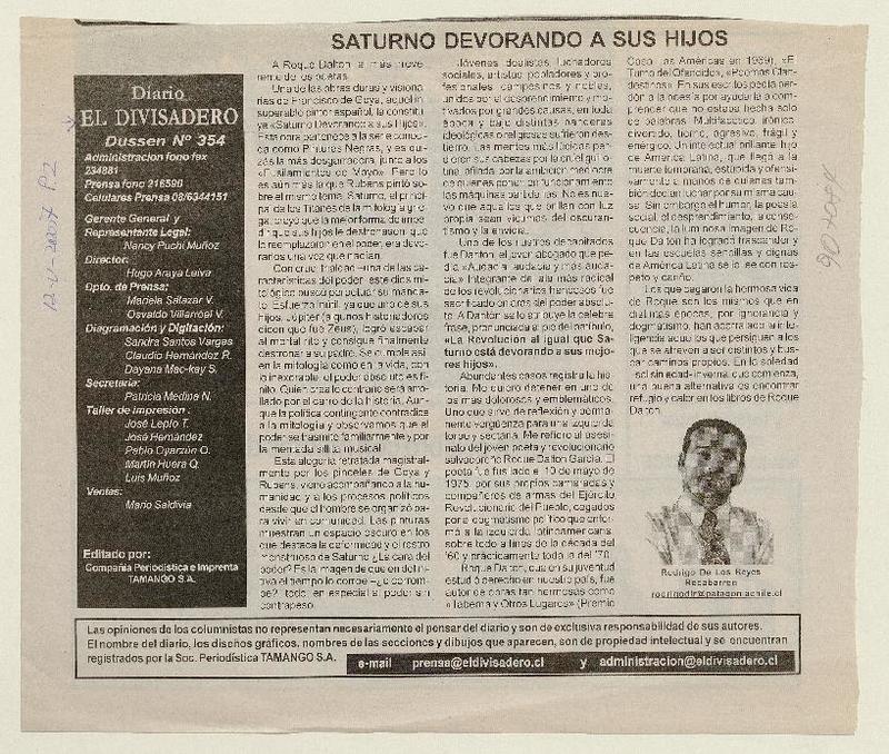 Saturno devorando a sus hijos [artículo]Rodrigo de los Reyes Recabarren.