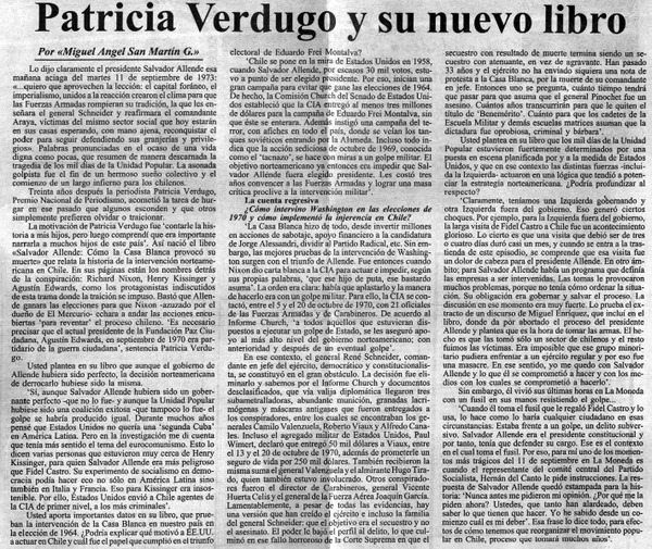 Patricia Verdugo y su nuevo libro [artículo] Miguel Angel San Martìn G.