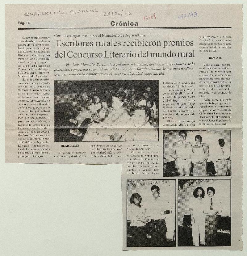 Escritores rurales recibieron premios del Concurso Literarios del mundo rural. [artículo]