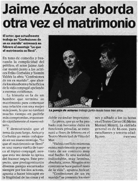 Jaime Azócar aborda otra vez el matrimonio [artículo]
