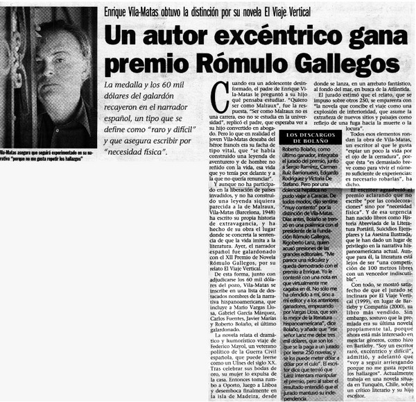 Gonzalo Rojas espera premio "vivo y fresco". [artículo]