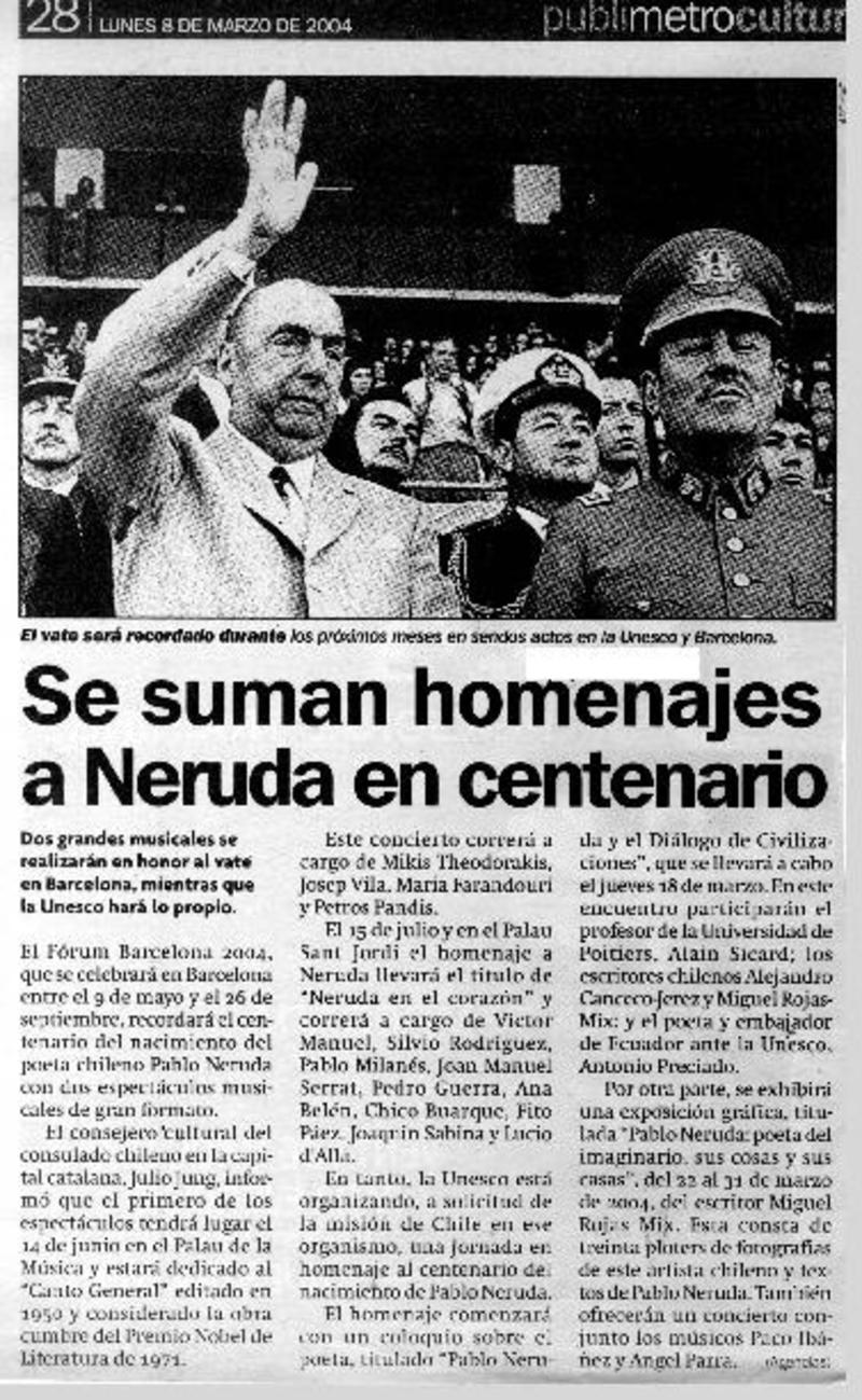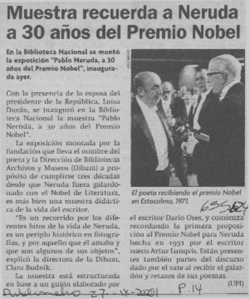 Muestra recuerda a Neruda a 30 años del Premio Nobel. [artículo]