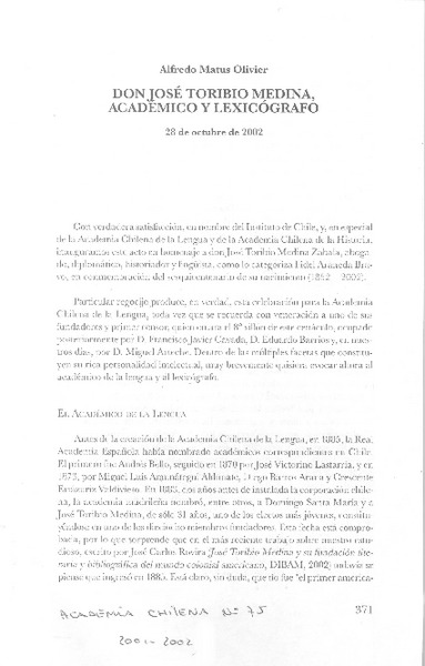 Académico y lexicógrafo [artículo] Alfredo Matus Olivier.