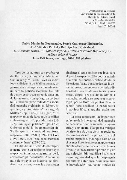 Marimán Quemenado, Pablo - Levil, Rodrigo - Millalen, José - Caniuqueo, Sergio - Escucha winka - Autores chilenos