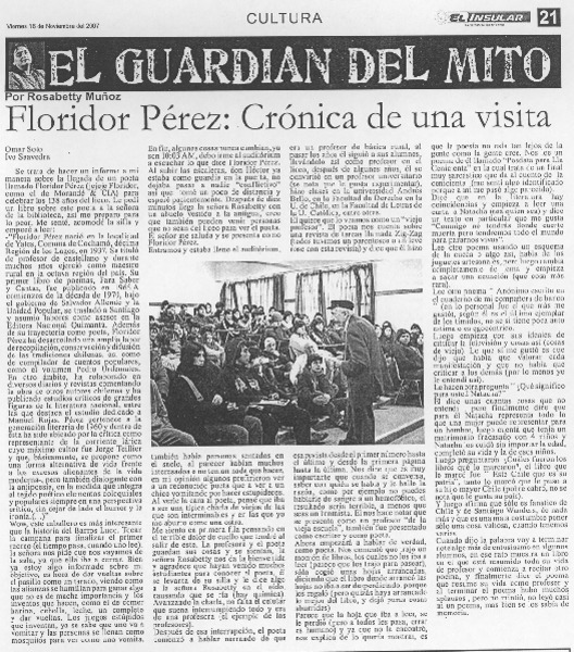 Floridor Pérez: crónica de una visita [artículo] Rosabetty Muñoz.