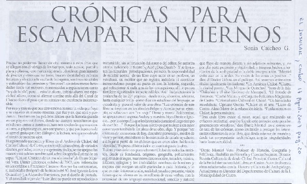 Crónicas para escampar inviernos [artículo] Sonia Caicheo Gallardo.