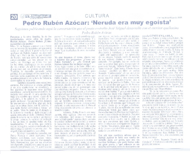 Neruda era muy egoísta (entrevista) [artículo] José Teiguel.