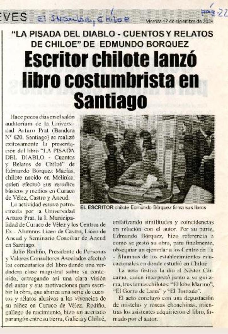 Escritor chilote lanzó libro costumbrista en Santiago [artículo].