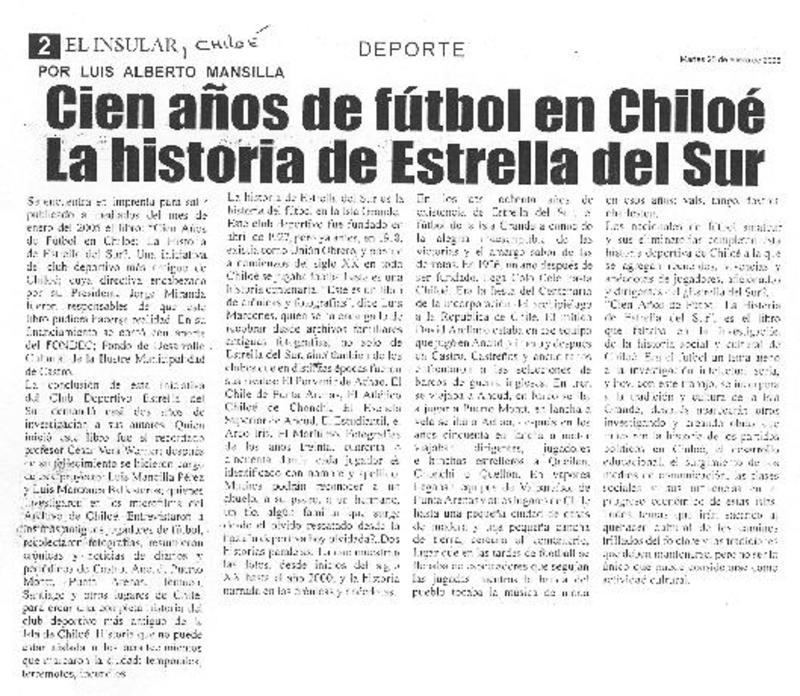 Cien años de fútbol en Chiloé [artículo].