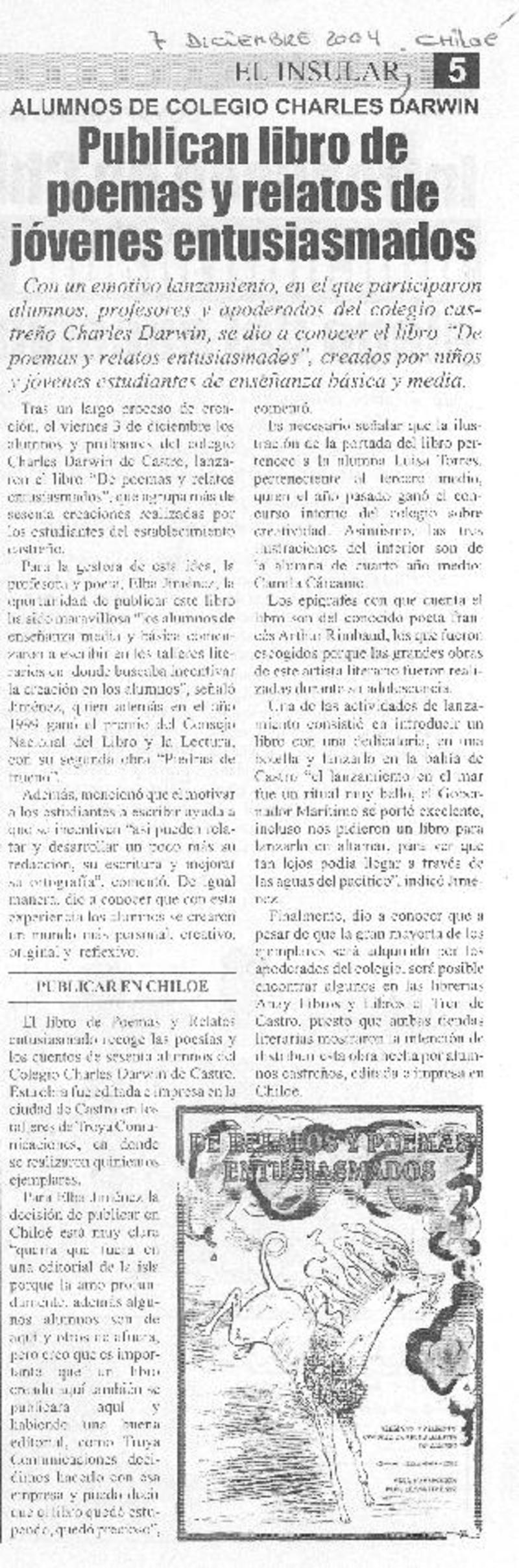 Publican libro de poemas y relatos de jóvenes entusiasmados [artículo].