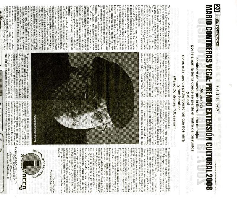 Mario Contreras Vega: Premio Extensión Cultural 2008 Carlos Trujillo.
