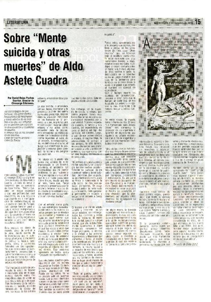 Sobre "Mente suicida y otras muertes" de Aldo Astete Cuadra [artículo] Daniel Rojas Pachas