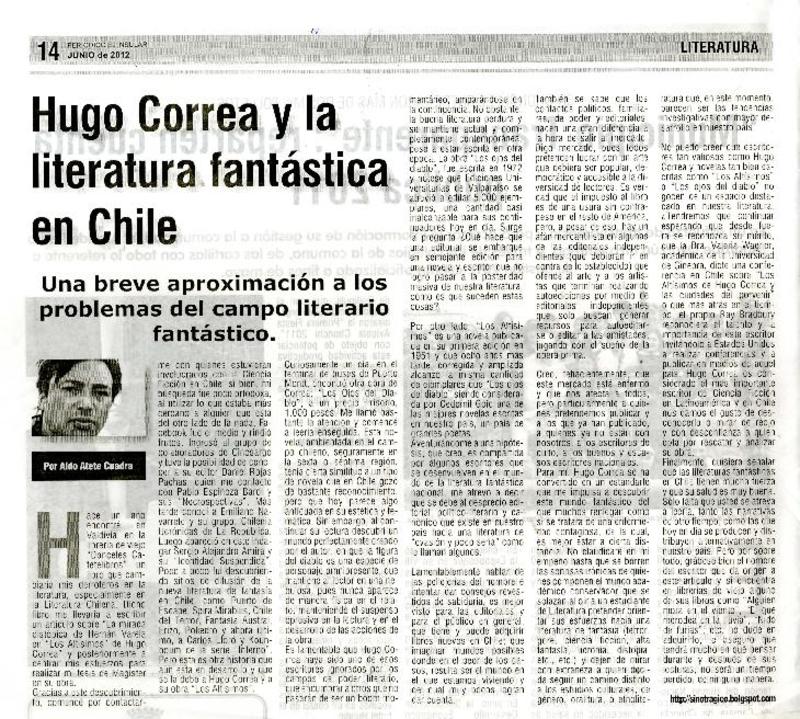 Hugo Correa y la literatura fantástica en Chile. Una breve aproximación a los problemas del campo literario fantástico [artículo] Aldo Astete Cuadra