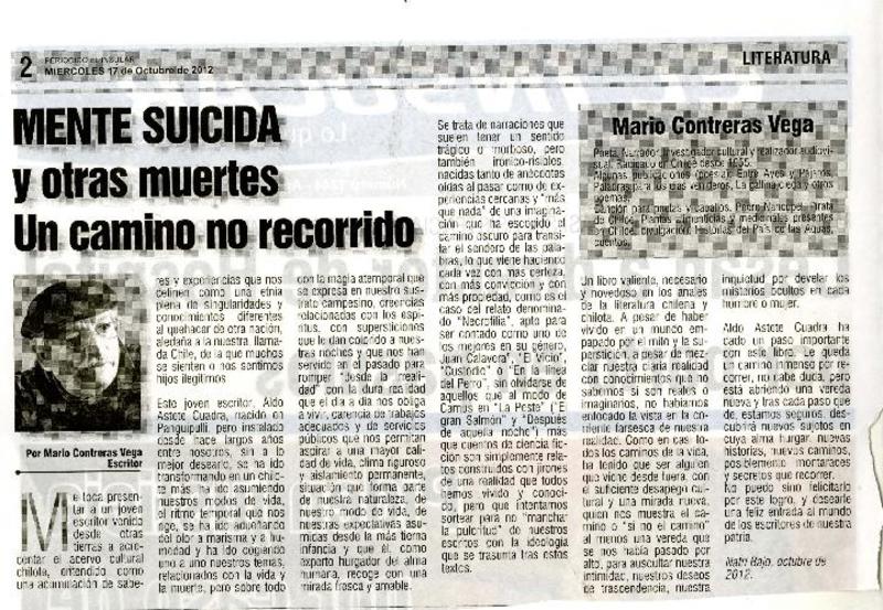 Mente suicida y otras muertes. Un camino no recorrido [artículo] Mario Contreras Vega